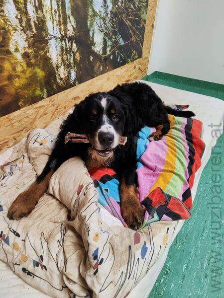 Nakon poziva prijatelja u pomoć, brzo smo zbrinuli ovog bernskog dječaka i nakon nekoliko dana ga primili kod sebe. To je postalo neophodno jer je vlasnik teško bolestan i nažalost više se nije mogao brinuti za ovog dječaka na način primjeren vrsti.